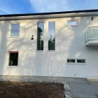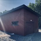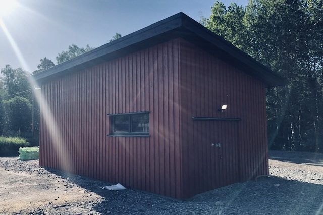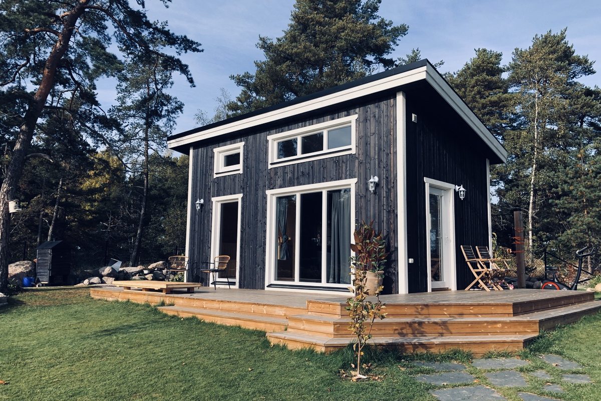 Vackert attefallshus med rum for bastu och fönster på varje sida. Levererad till Stockholm.
